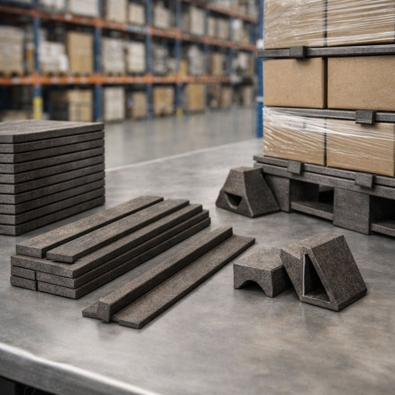 Para separadores, calces, perfiles de embalaje retornable y protecciones contra golpes/roces.